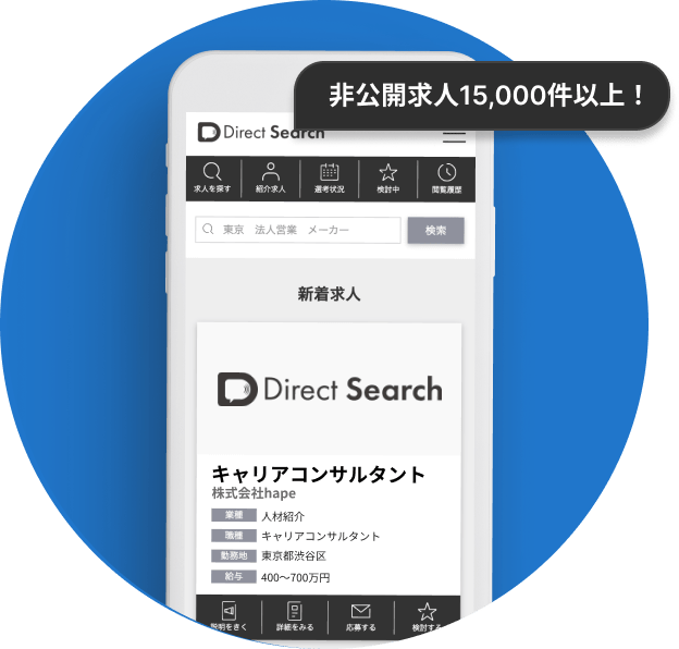弊社独自の完全会員制転職プラットフォーム「Direct Search」で、24時間視聴可能な音声コンテンツや20,000件以上の営業職の求人情報、非公開求人も多数掲載しております。